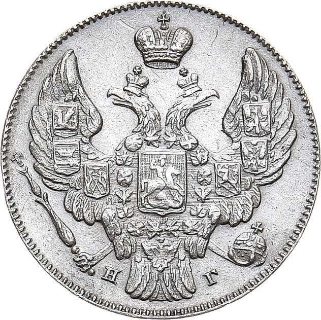 Find out the current coin value of the Russian 10 Kopeks 1841 "Eagle 1842" with mark СПБ НГ. This silver coin from the times of Nicholas I struck at the Saint Petersburg Mint. Wondering how much a coin like this is worth? The record price belongs to the lot 63 sold at the RND auction for RUB 1,400,000. Bidding took place October 27, 2022.
