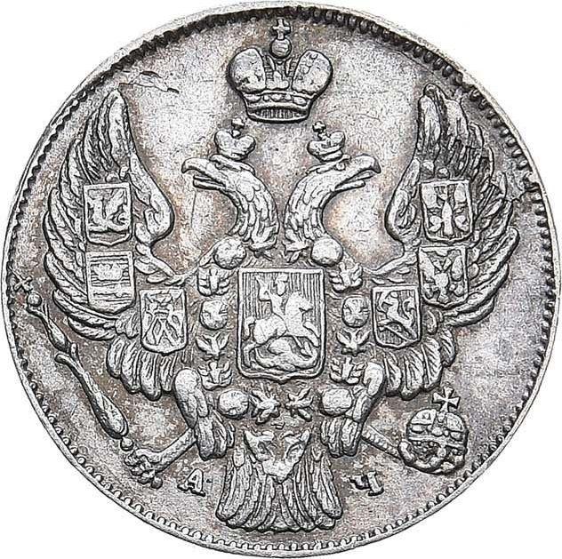 Find out the current coin value of the Russian 10 Kopeks 1843 "Eagle 1842" with mark СПБ АЧ. This silver coin from the times of Nicholas I struck at the Saint Petersburg Mint. Wondering how much a coin like this is worth? The record price belongs to the lot 241 sold at the MUNZE auction for RUB 72,500. Bidding took place December 10, 2019.