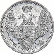 Find out the current coin value of the Russian 10 Kopeks 1849 "Eagle 1845-1848" with mark СПБ ПА. This silver coin from the times of Nicholas I struck at the Saint Petersburg Mint. Wondering how much a coin like this is worth? The record price belongs to the lot 732 sold at the SINCONA AG auction for CHF 2,400. Bidding took place October 12, 2015.