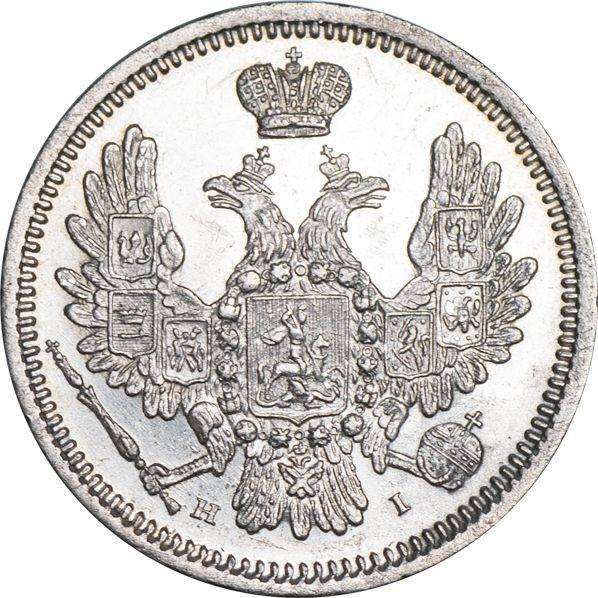 The information on the current value of the Russian coin 10 Kopeks 1855 "Eagle 1851-1858" with the letters СПБ HI is based on actual auction sales of similar specimens. To reflect the current price level, our service monitors over 590 numismatic companies and records auction results in the coin catalog and auction archive. Please note that the exact value depends directly on the coin's condition, so the average price serves only as an approximate estimate.