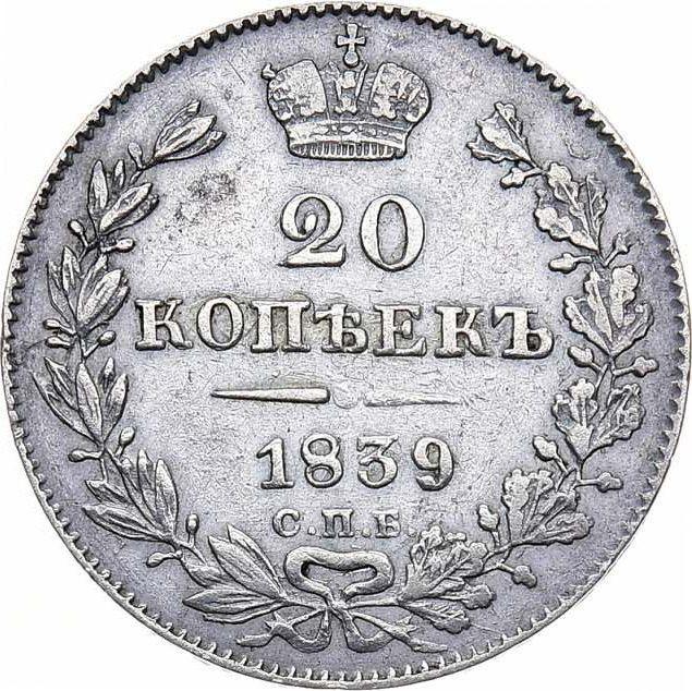 20 Kopeks 1839 СПБ НГ "Eagle 1832-1843". Big bow (Russia, Nicholas I)