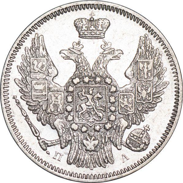 Find out the current coin value of the Russian 20 Kopeks 1846 "Eagle 1845-1847" with mark СПБ ПА. This silver coin from the times of Nicholas I struck at the Saint Petersburg Mint. Wondering how much a coin like this is worth? The record price belongs to the lot 72 sold at the RND auction for RUB 150,000. Bidding took place October 27, 2022.