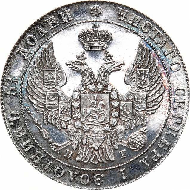 Find out the current coin value of the Russian 25 Kopeks 1837 "Eagle 1832-1837" with mark СПБ НГ. This silver coin from the times of Nicholas I struck at the Saint Petersburg Mint. Wondering how much a coin like this is worth? The record price belongs to the lot 33131 sold at the Heritage Auctions auction for USD 14,400. Bidding took place August 17, 2023.