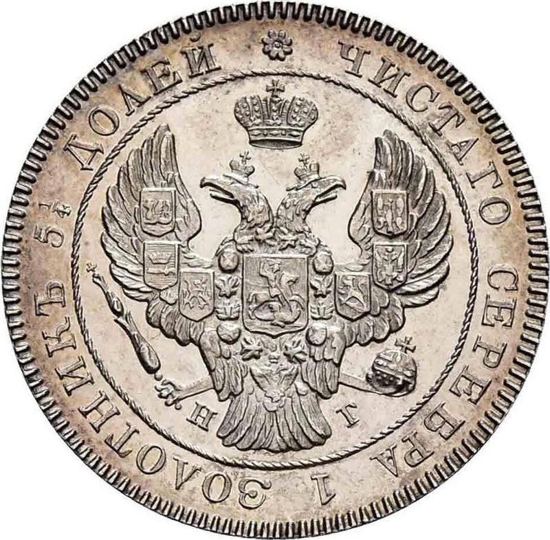 Find out the current coin value of the Russian 25 Kopeks 1839 "Eagle 1839-1843" with mark СПБ НГ. This silver coin from the times of Nicholas I struck at the Saint Petersburg Mint. Wondering how much a coin like this is worth? The record price belongs to the lot 1035 sold at the Katz Auction auction for EUR 25,500. Bidding took place October 27, 2018.