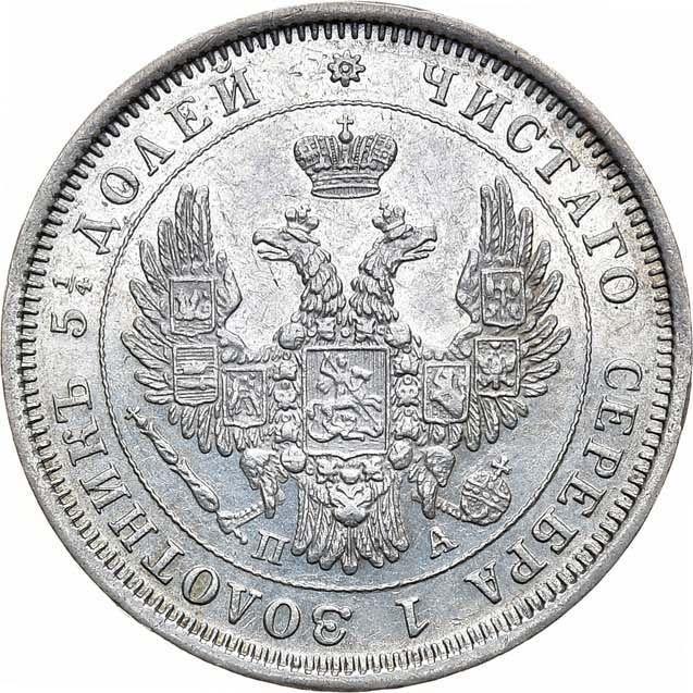 According to the latest data as of December 5, 2025 the average price of a Silver coin 25 Kopeks 1851 "Eagle 1850-1858" with mark СПБ ПА is 430 USD for regular strike and 3200 USD for coins minted using the PROOF technology.