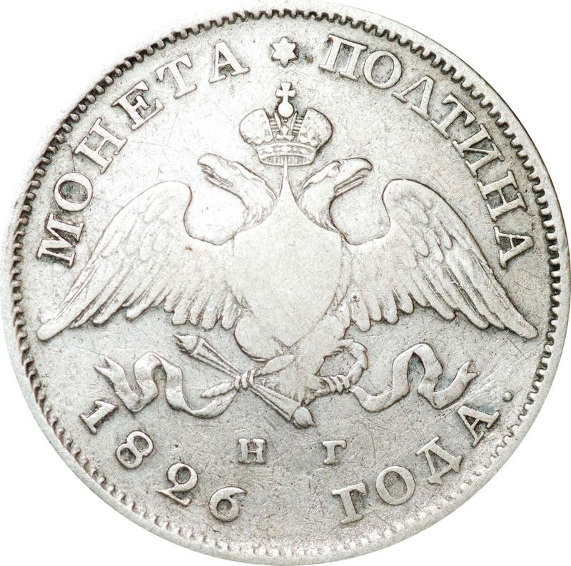 Poltina 1826 СПБ НГ "An eagle with lowered wings". Wide crown (Russia, Nicholas I)