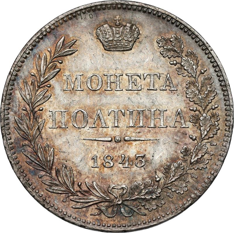 How much is the silver coin of Nicholas I Poltina 1843 MW "Warsaw Mint", Eagle's tail fanned out, Small bow?