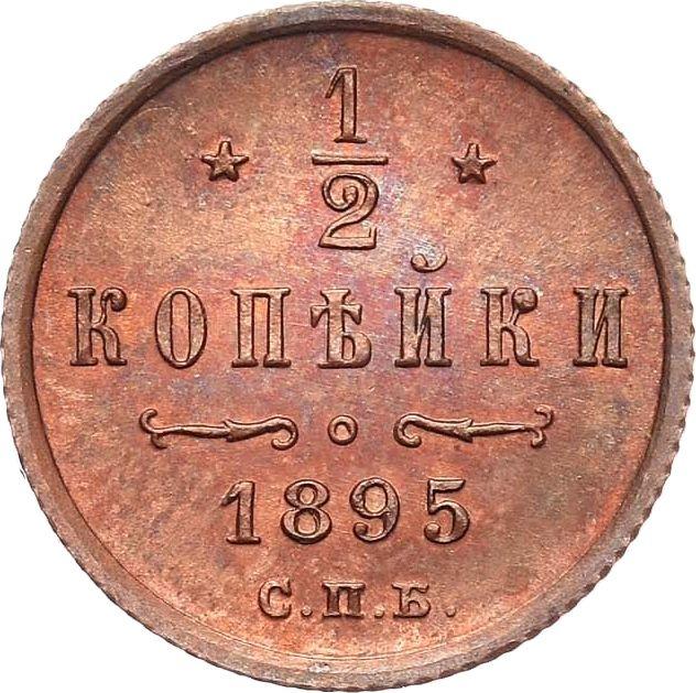 1/2 Kopek 1895 СПБ. Special monogram, three curls at the top (Russia, Nicholas II)