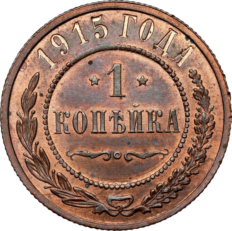 Find out the current coin value of the Russian 1 Kopek 1915 . This copper coin from the times of Nicholas II struck at the Saint Petersburg Mint. Wondering how much a coin like this is worth? The record price belongs to the lot 289 sold at the Russian Heritage auction for RUB 400,000. Bidding took place August 30, 2025.