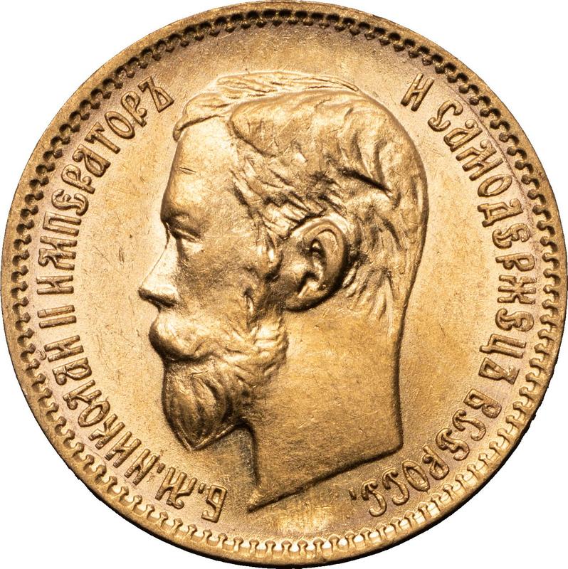 Find out the current coin value of the Russian 5 Roubles 1900 with mark (ФЗ). This gold coin from the times of Nicholas II struck at the Saint Petersburg Mint. Wondering how much a coin like this is worth? The record price belongs to the lot 375 sold at the AURORA auction for RUB 950,000. Bidding took place April 21, 2022.
