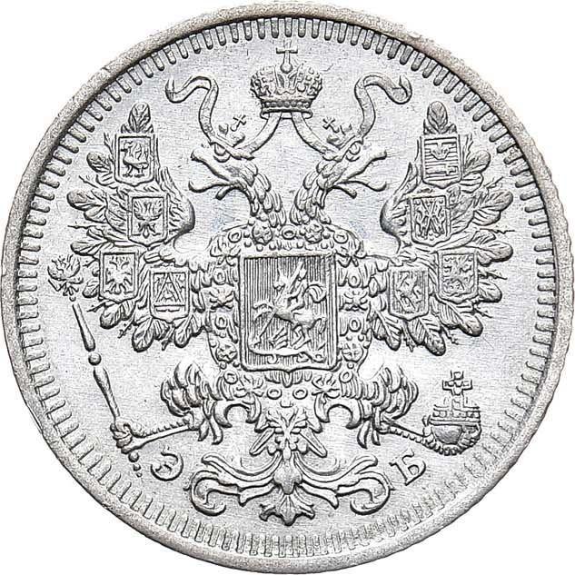 Find out the current coin value of the Russian 15 Kopeks 1908 with mark СПБ ЭБ. This silver coin from the times of Nicholas II struck at the Saint Petersburg Mint. Wondering how much a coin like this is worth? The record price belongs to the lot 33931 sold at the Heritage Auctions auction for USD 6,000. Bidding took place January 16, 2024.