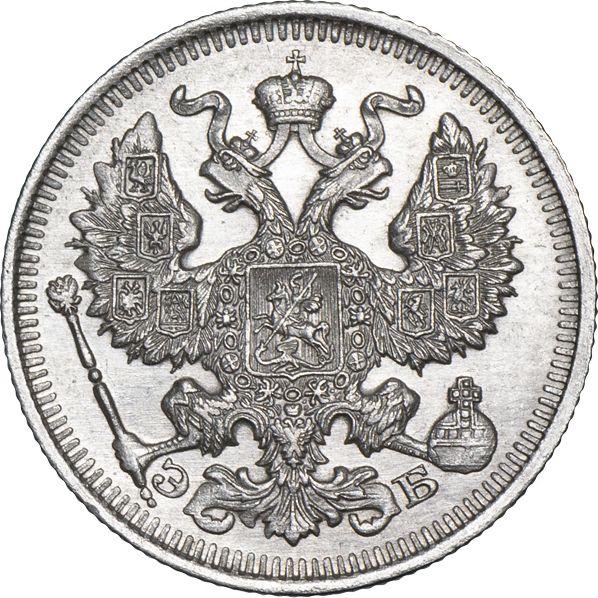 Find out the current coin value of the Russian 20 Kopeks 1911 with mark СПБ ЭБ. This silver coin from the times of Nicholas II struck at the Saint Petersburg Mint. Wondering how much a coin like this is worth? The record price belongs to the lot 175 sold at the MS67 auction for RUB 175,000. Bidding took place June 26, 2019.