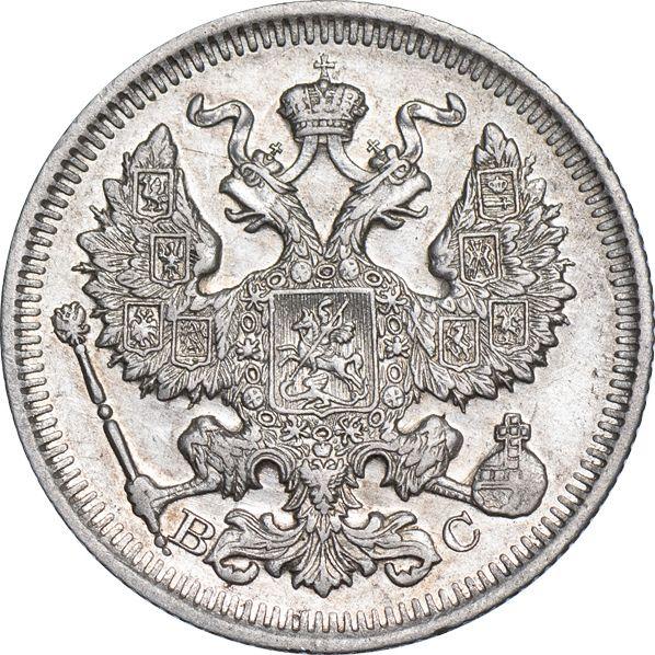The information on the current value of the Russian coin 20 Kopeks 1913 with the letters СПБ ВС is based on actual auction sales of similar specimens. To reflect the current price level, our service monitors over 590 numismatic companies and records auction results in the coin catalog and auction archive. Please note that the exact value depends directly on the coin's condition, so the average price serves only as an approximate estimate.
