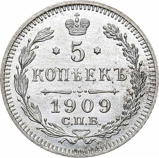 According to the latest data as of December 5, 2025 the average price of a Silver coin 5 Kopeks 1909 with mark СПБ ЭБ is 90 USD for regular strike and 1700 USD for coins minted using the PROOF technology.