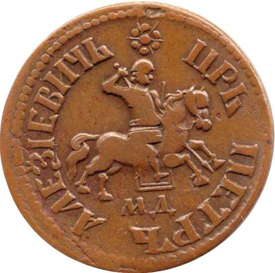 Find out the current coin value of the Russian 1 Kopek ҂АΨД (1704) with mark МД. This copper coin from the times of Peter I. Wondering how much a coin like this is worth? The record price belongs to the lot 20 sold at the Russian Heritage auction for USD 120,000. Bidding took place October 14, 2018.