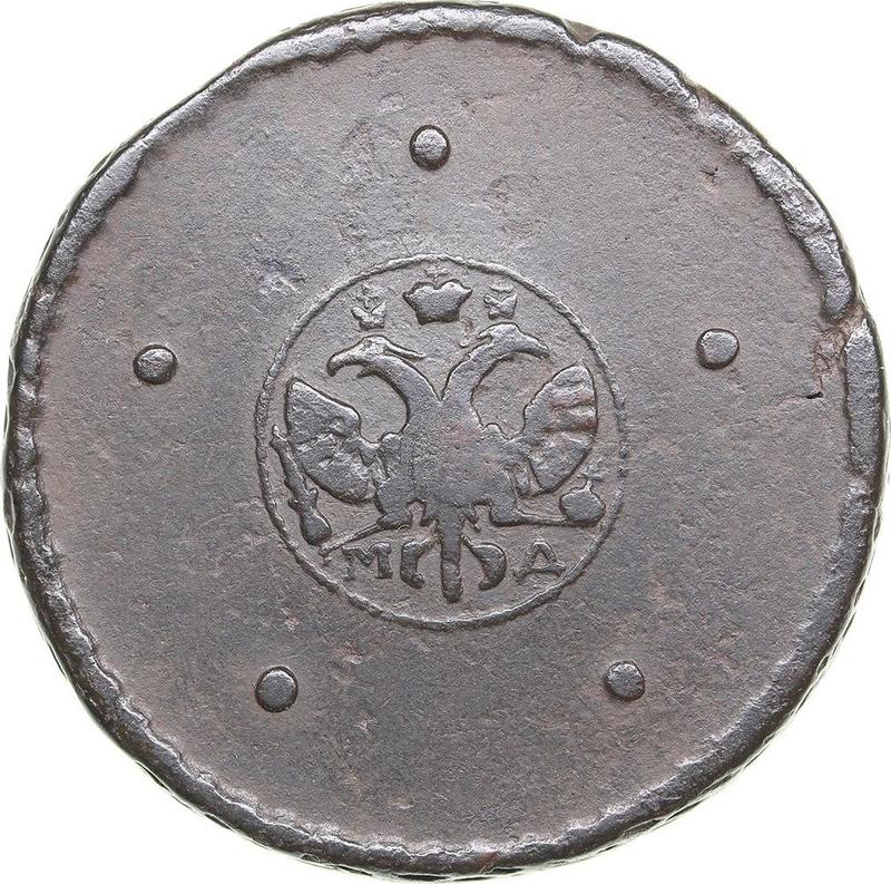 The information on the current value of the Russian coin 5 Kopeks 1724 with the letters МД is based on actual auction sales of similar specimens. To reflect the current price level, our service monitors over 590 numismatic companies and records auction results in the coin catalog and auction archive. Please note that the exact value depends directly on the coin's condition, so the average price serves only as an approximate estimate.