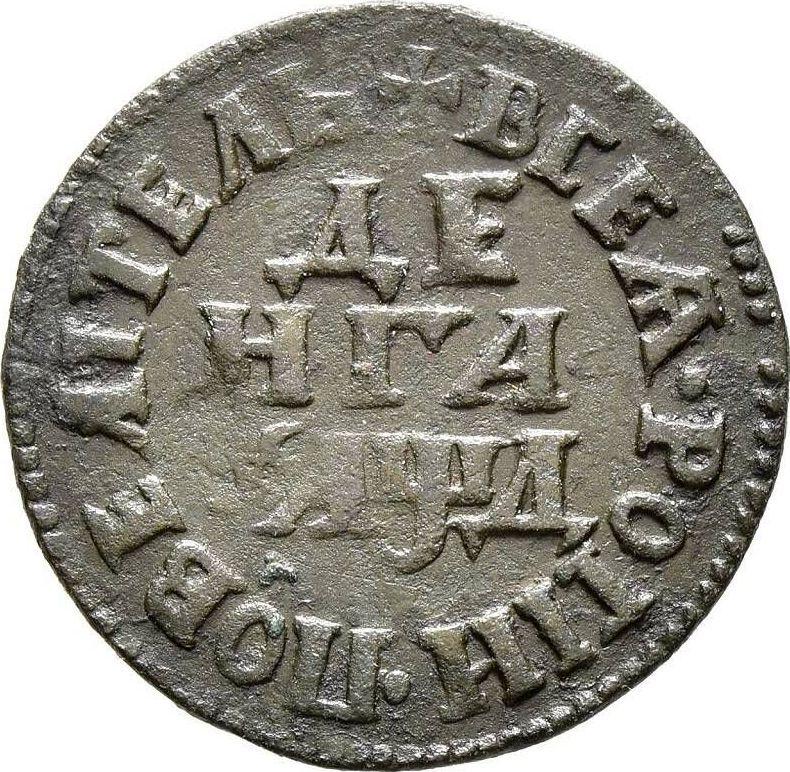 Denga (1/2 Kopek) ҂АΨД (1704) "ВСЕЯ РОССИИ ПОВЕЛИТЕЛЬ" (Russia, Peter I)