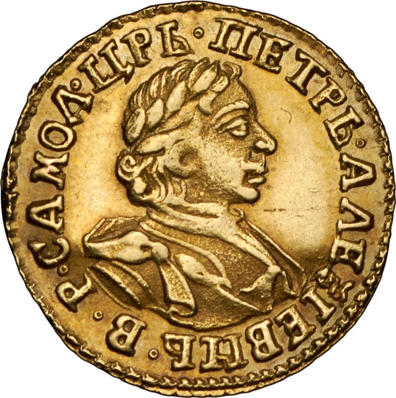 Find out the current coin value of the Russian 2 Roubles 1720 "Portrait in lats". "САМОД.". The head is small. This gold coin from the times of Peter I struck at the Red Mint. Wondering how much a coin like this is worth? The record price belongs to the lot 3302 sold at the Stack's Bowers auction for USD 29,900. Bidding took place January 15, 2007.