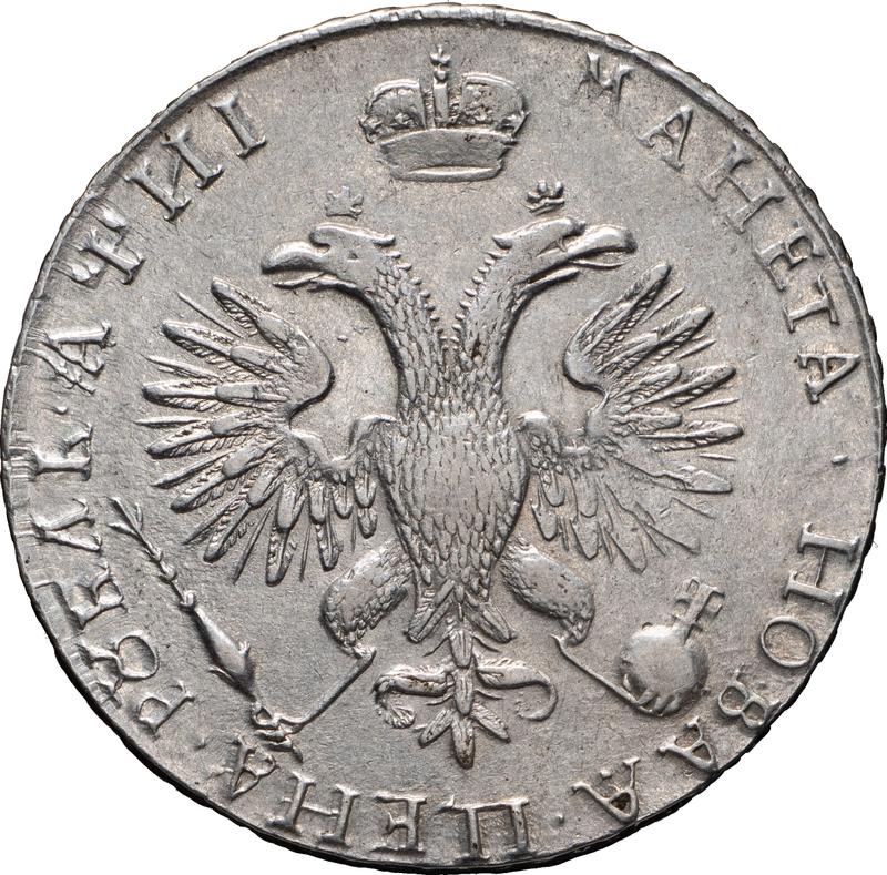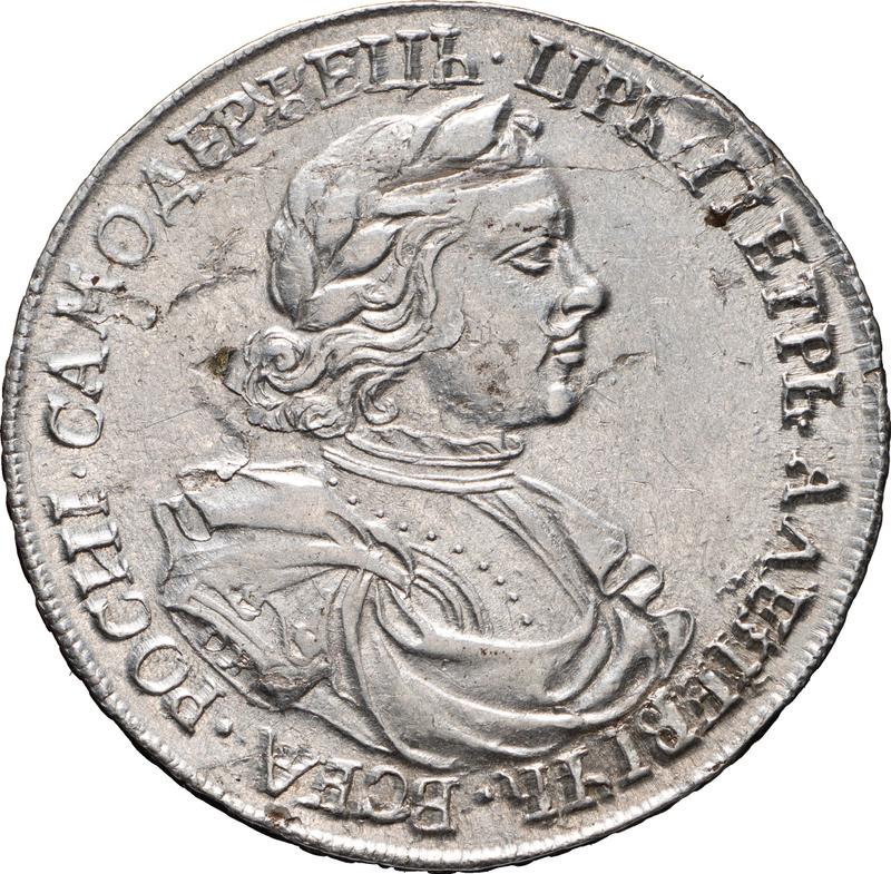 Rouble ҂АΨИI (1718) OK "Portrait in lats". Rivets on the chest (Russia, Peter I)