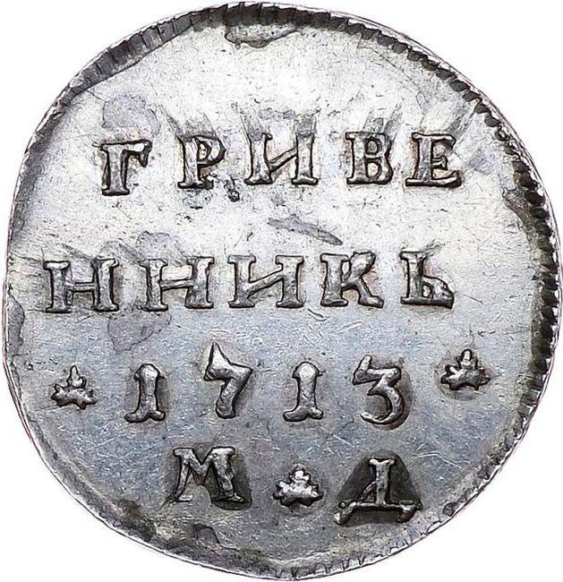 Grivennik (10 Kopeks) 1713 МД. Restrike (Russia, Peter I)