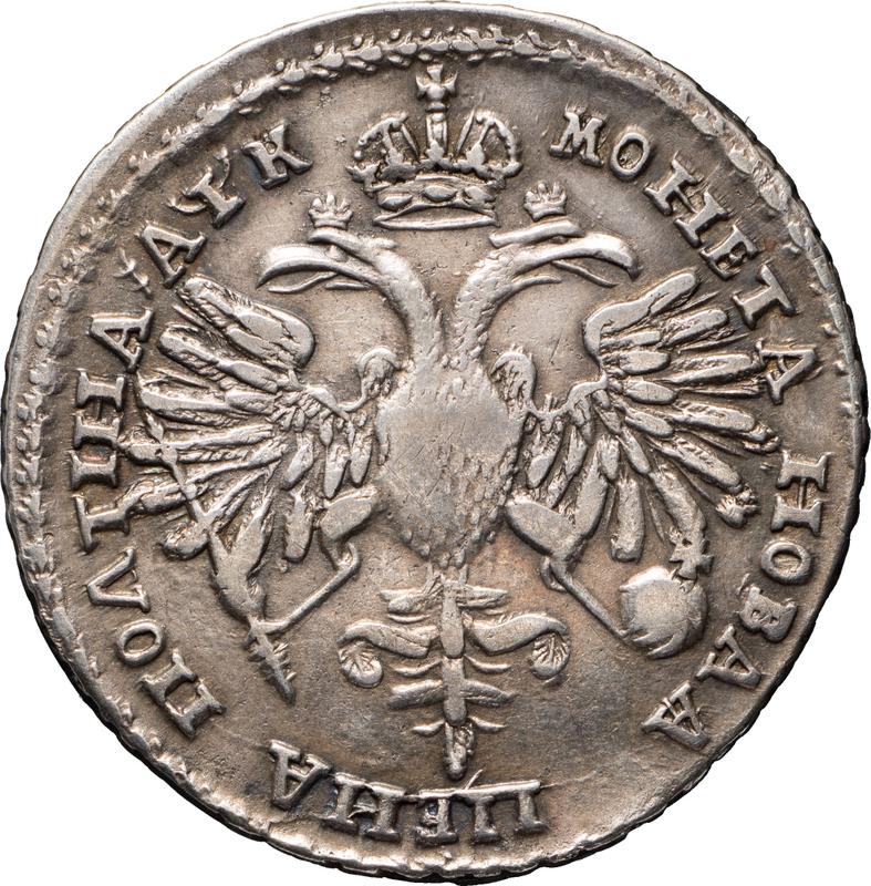 Find out the current coin value of the Russian Poltina ҂АΨК (1720) "Portrait in lats". Buckle on the cloak. This silver coin from the times of Peter I. Wondering how much a coin like this is worth? The record price belongs to the lot 8030 sold at the Fritz Rudolf Künker GmbH & Co. KG auction for EUR 7,000. Bidding took place September 30, 2010.