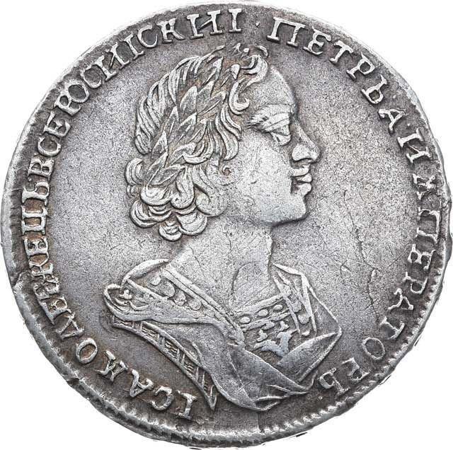 How much is the silver coin of Peter I Poltina 1724 "Portrait in antique armour", The portrait divides the inscription?