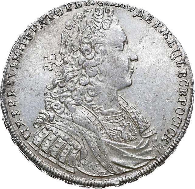 Rouble 1729. Without a star on the chest (Russia, Peter II)
