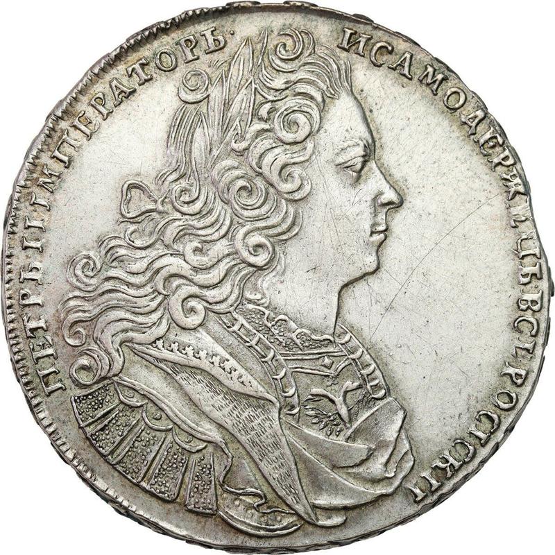 Find out the current coin value of the Russian Rouble 1728 "Moscow type". This silver coin from the times of Peter II struck at the Moscow (Kadashevskaya Sloboda) Mint. Wondering how much a coin like this is worth? The record price belongs to the lot 13 sold at the AURORA auction for RUB 1,400,000. Bidding took place July 24, 2025.