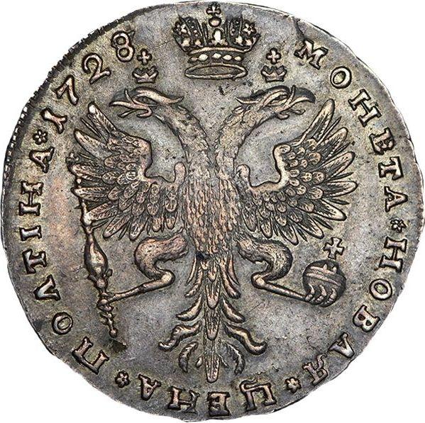 Find out the current coin value of the Russian Poltina 1728 "Moscow type". "I САМОДЕРЖЕЦЪ ВСЕРОСIСКИ". This silver coin from the times of Peter II struck at the Moscow (Kadashevskaya Sloboda) Mint. Wondering how much a coin like this is worth? The record price belongs to the lot 106 sold at the Russian Heritage auction for USD 20,000. Bidding took place October 13, 2019.