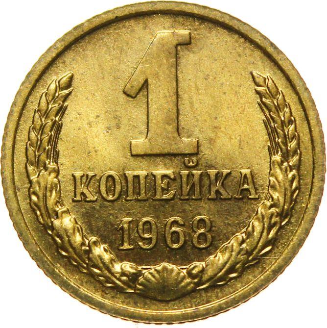 Find out the current coin value of the Russian 1 Kopek 1968 . This tombac coin from the times of USSR. Wondering how much a coin like this is worth? The record price belongs to the lot 72 sold at the MS67 auction for RUB 2,400. Bidding took place May 15, 2019.