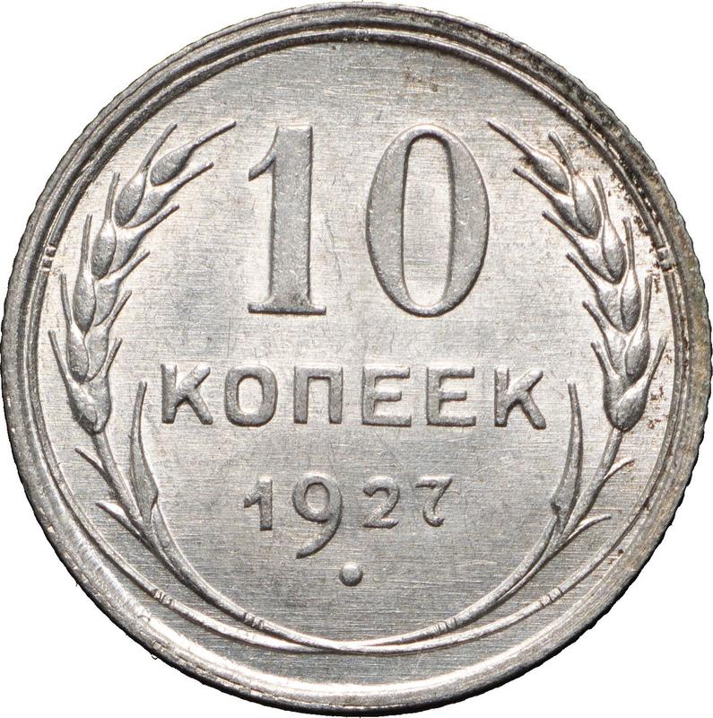 Find out the current coin value of the Russian 10 Kopeks 1927 . This silver coin from the times of USSR. Wondering how much a coin like this is worth? The record price belongs to the lot 100 sold at the Rare Coins auction for USD 4,700. Bidding took place October 22, 2016.