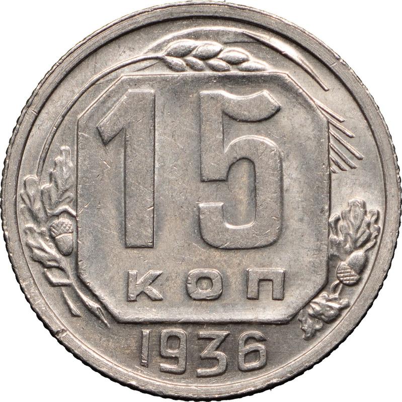 Find out the current coin value of the Russian 15 Kopeks 1936 . This copper-nickel coin from the times of USSR. Wondering how much a coin like this is worth? The record price belongs to the lot 281 sold at the Coins and Medals auction for RUB 69,000. Bidding took place June 11, 2025.