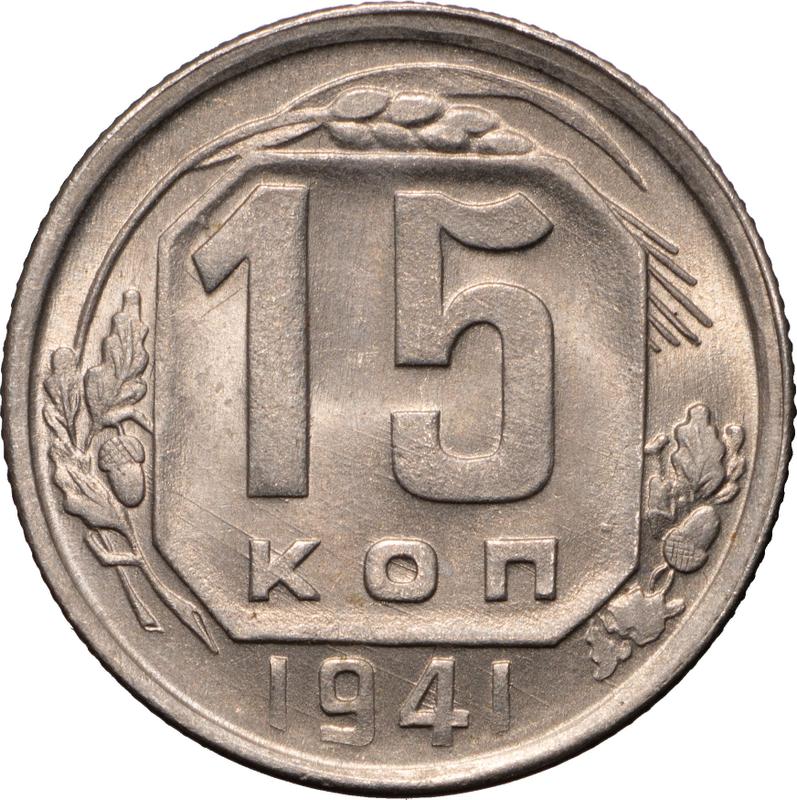 Find out the current coin value of the Russian 15 Kopeks 1941 . This copper-nickel coin from the times of USSR. Wondering how much a coin like this is worth? The record price belongs to the lot 189 sold at the Coins and Medals auction for RUB 15,600. Bidding took place June 25, 2022.