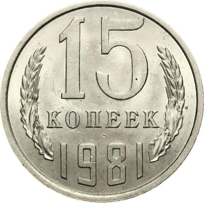 Find out the current coin value of the Russian 15 Kopeks 1981 . This nickel silver coin from the times of USSR. Wondering how much a coin like this is worth? The record price belongs to the lot 385 sold at the AURORA auction for RUB 1,900. Bidding took place July 30, 2019.