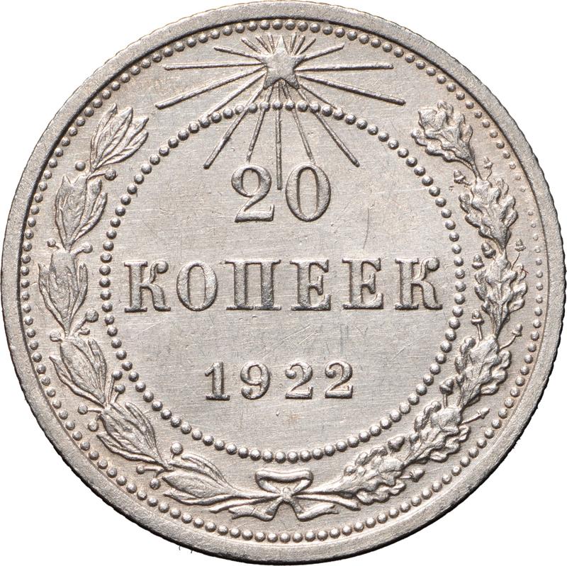 Find out the current coin value of the Russian 20 Kopeks 1922 . This silver coin from the times of USSR. Wondering how much a coin like this is worth? The record price belongs to the lot 33114 sold at the Heritage Auctions auction for USD 11,163. Bidding took place January 8, 2017.
