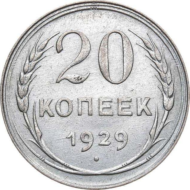 20 Kopeks 1929. Wide letters in "СССР" (Russia, Soviet Union - USSR)