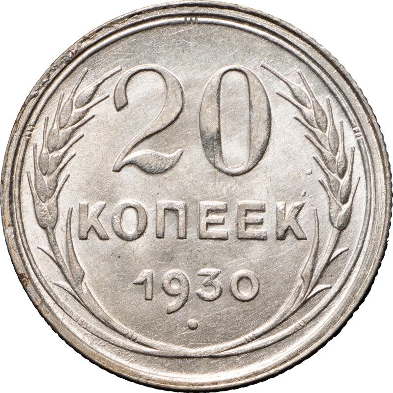 Find out the current coin value of the Russian 20 Kopeks 1930 . Wide letters in "СССР". This silver coin from the times of USSR. Wondering how much a coin like this is worth? The record price belongs to the lot 330 sold at the AURORA auction for RUB 70,000. Bidding took place May 26, 2021.