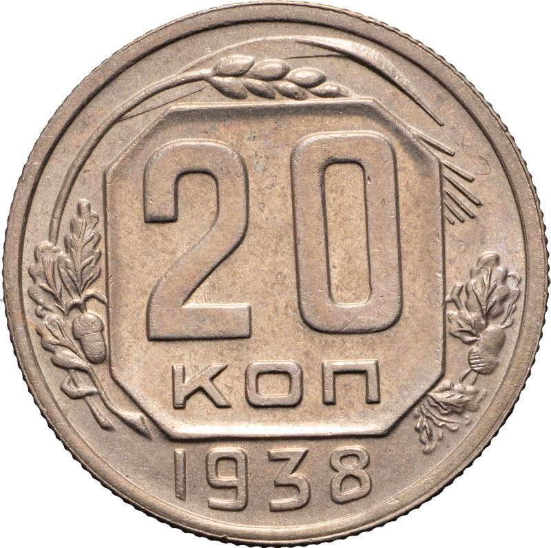 Find out the current coin value of the Russian 20 Kopeks 1938 . Relief star. This copper-nickel coin from the times of USSR. Wondering how much a coin like this is worth? The record price belongs to the lot 538 sold at the Alexander auction for RUB 62,000. Bidding took place August 16, 2022.