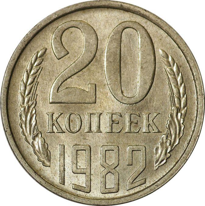 Find out the current coin value of the Russian 20 Kopeks 1982 . This nickel silver coin from the times of USSR. Wondering how much a coin like this is worth? The record price belongs to the lot 2093 sold at the Numisbalt auction for EUR 44. Bidding took place November 6, 2021.