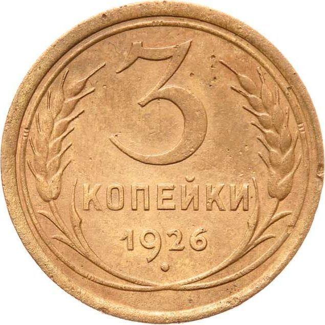 Find out the current coin value of the Russian 3 Kopeks 1926 . Narrow letters in "СССР". This aluminum-bronze coin from the times of USSR. Wondering how much a coin like this is worth? The record price belongs to the lot 1380 sold at the Rare Coins auction for RUB 50,000. Bidding took place June 15, 2022.