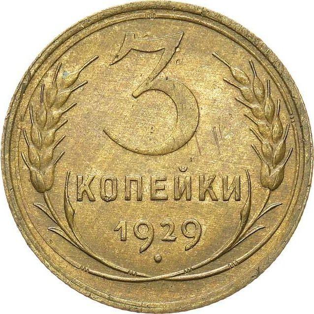 3 Kopeks 1929. Wide letters in "СССР" (Russia, Soviet Union - USSR)
