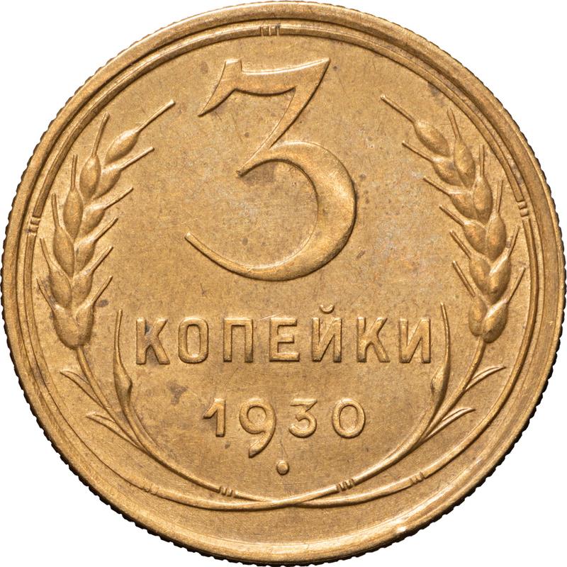 3 Kopeks 1930. Wide letters in "СССР" (Russia, Soviet Union - USSR)