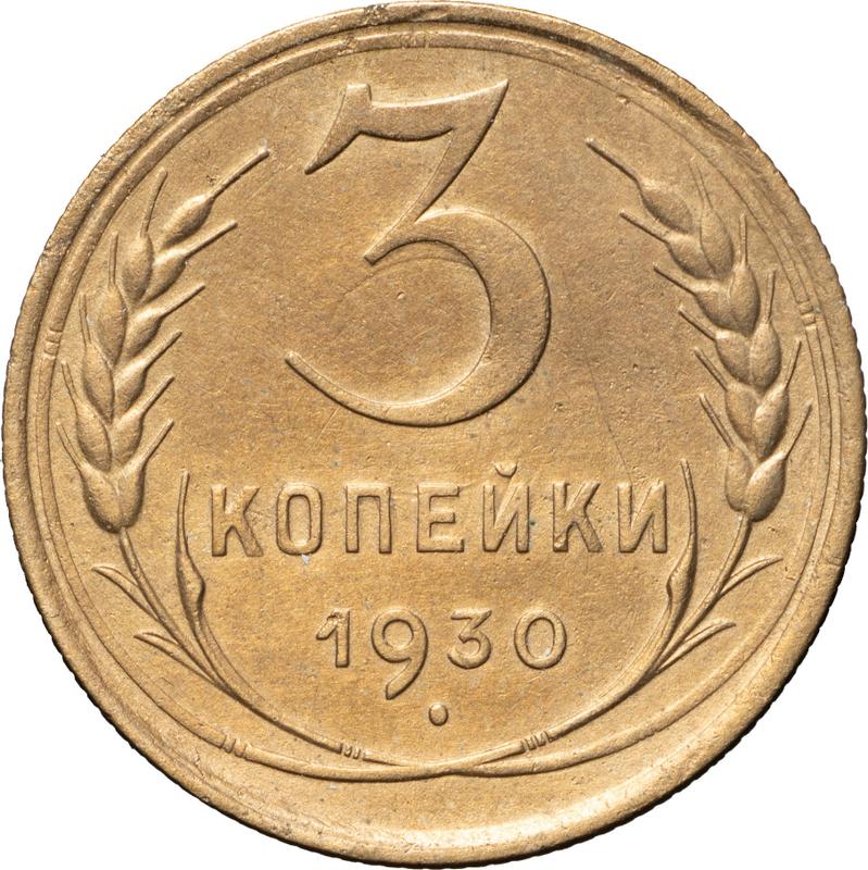 3 Kopeks 1930. Narrow letters in "СССР" (Russia, Soviet Union - USSR)