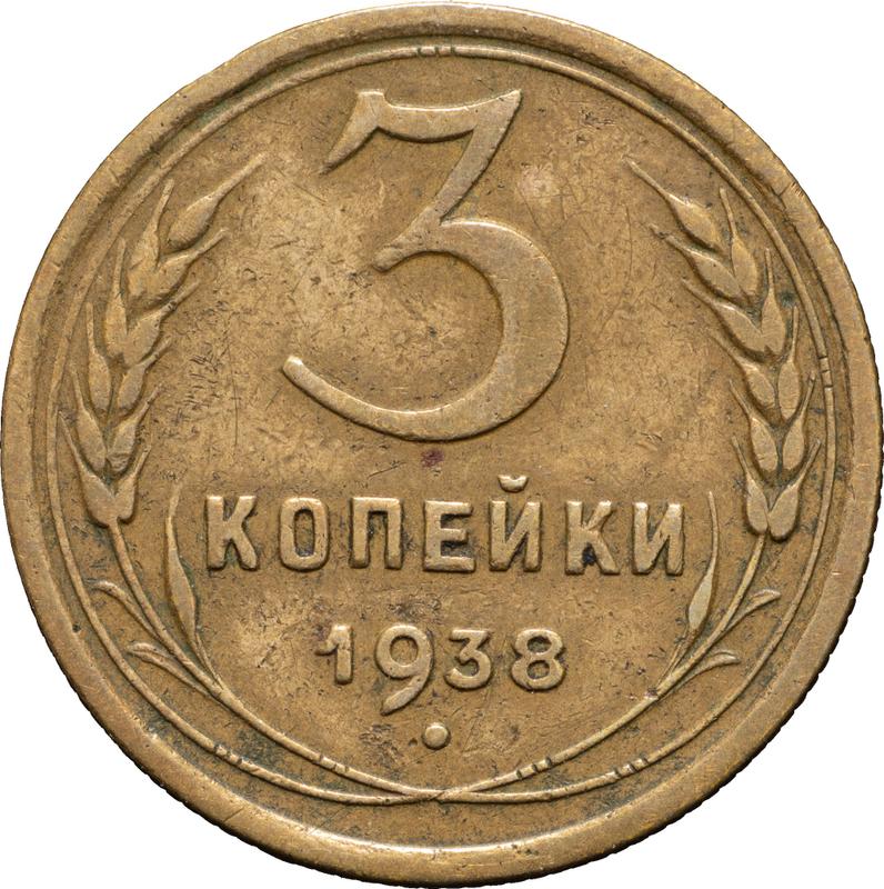 Find out the current coin value of the Russian 3 Kopeks 1938 . Smooth star. This aluminum-bronze coin from the times of USSR. Wondering how much a coin like this is worth? The record price belongs to the lot 425 sold at the Coins and Medals auction for RUB 48,300. Bidding took place June 16, 2023.