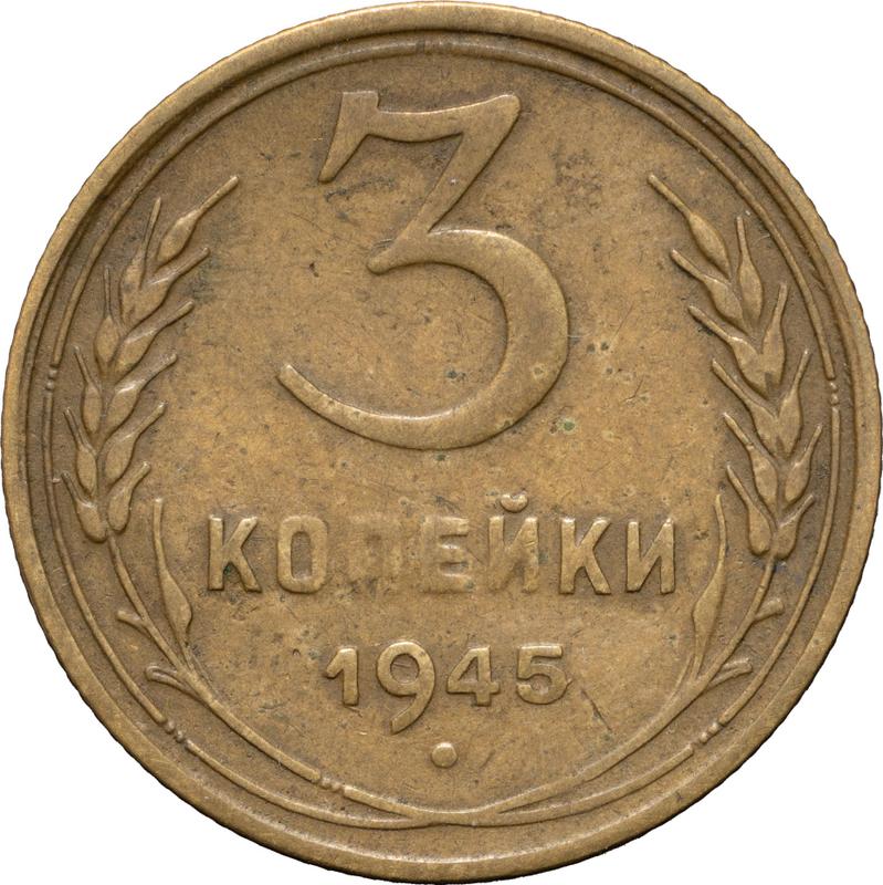 Find out the current coin value of the Russian 3 Kopeks 1945 . Smooth star. This aluminum-bronze coin from the times of USSR