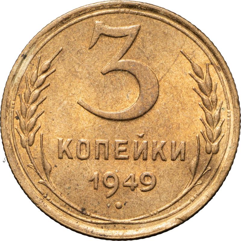 Find out the current coin value of the Russian 3 Kopeks 1949 . Relief star. This aluminum-bronze coin from the times of USSR. Wondering how much a coin like this is worth? The record price belongs to the lot 265 sold at the MS67 auction for RUB 24,000. Bidding took place February 15, 2018.