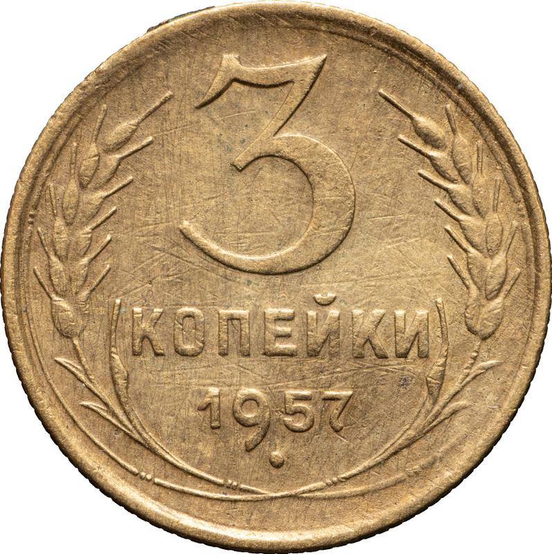 Find out the current coin value of the Russian 3 Kopeks 1957 . Wreath with 16 ribbons. This aluminum-bronze coin from the times of USSR. Wondering how much a coin like this is worth? The record price belongs to the lot 572 sold at the Alexander auction for RUB 9,741. Bidding took place August 16, 2022.