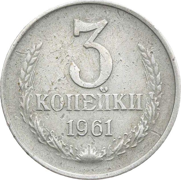 3 Kopeks 1961 "Type 1961-1991". Copper-Nickel (Russia, Soviet Union - USSR)