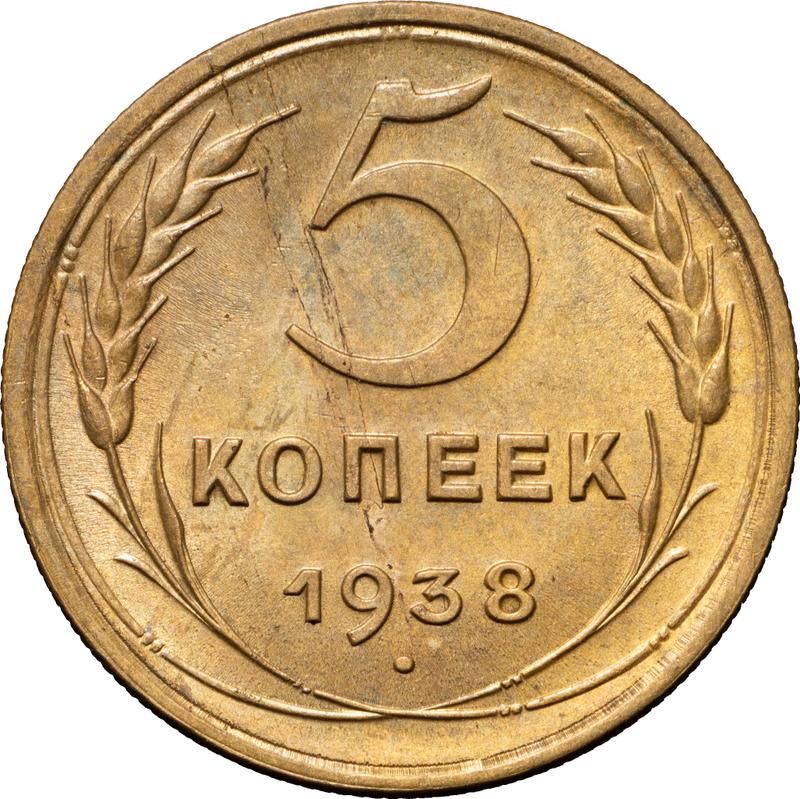 Find out the current coin value of the Russian 5 Kopeks 1938 . This aluminum-bronze coin from the times of USSR. Wondering how much a coin like this is worth? The record price belongs to the lot 306 sold at the Coins and Medals auction for RUB 97,000. Bidding took place June 11, 2025.