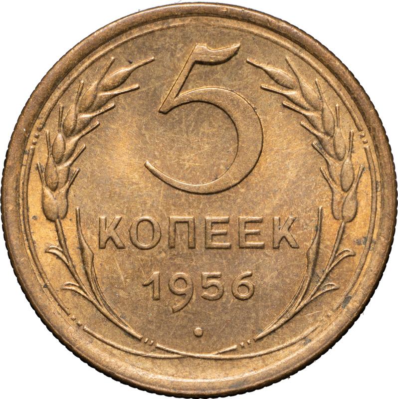 Find out the current coin value of the Russian 5 Kopeks 1956 . This aluminum-bronze coin from the times of USSR. Wondering how much a coin like this is worth? The record price belongs to the lot 264 sold at the RND auction for RUB 20,000. Bidding took place February 25, 2017.